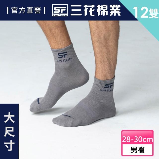 - 【SunFlower 三花】12雙組加大襪1/2休閒薄襪(短襪.襪子.大尺碼襪)