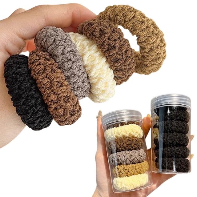 【89 zone】法式古典加粗馬尾純色造型 髮飾 頭飾 飾品 大腸髮束 髮繩 髮圈 髮束 5 入(不挑款/混色隨機出貨) |